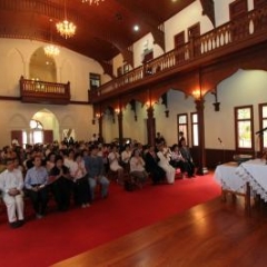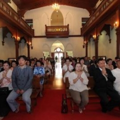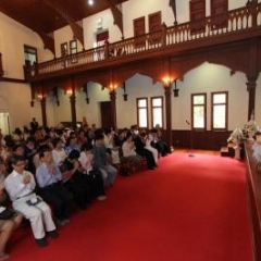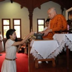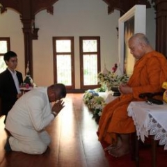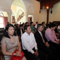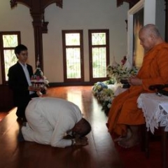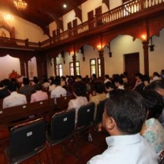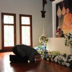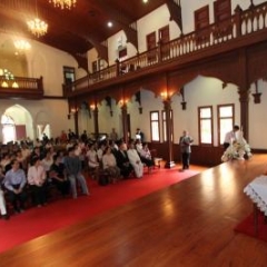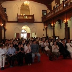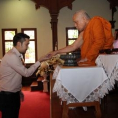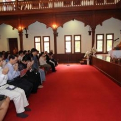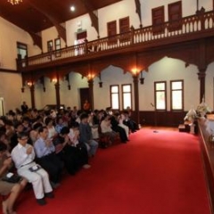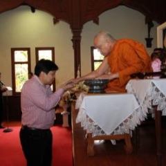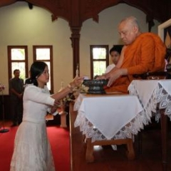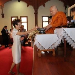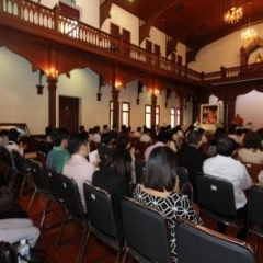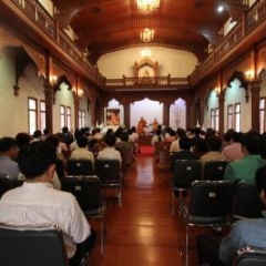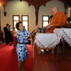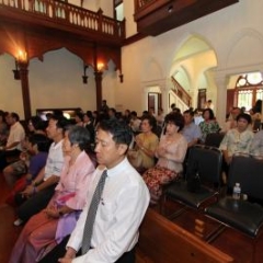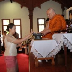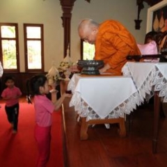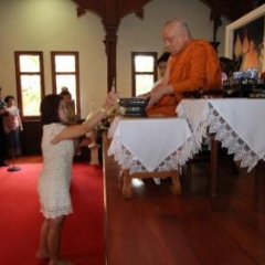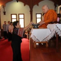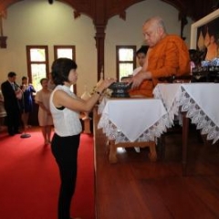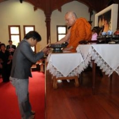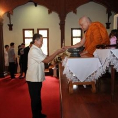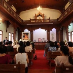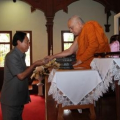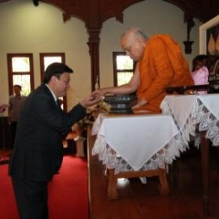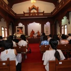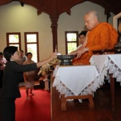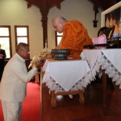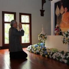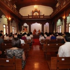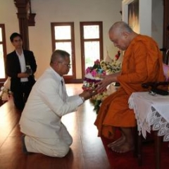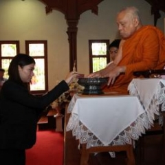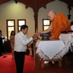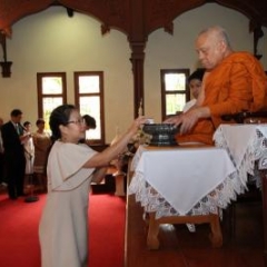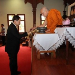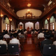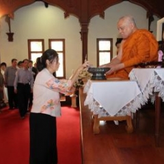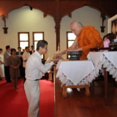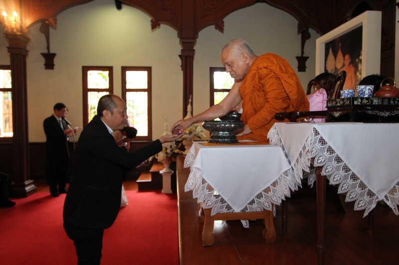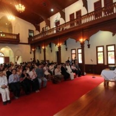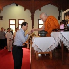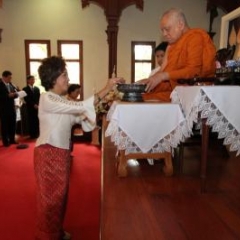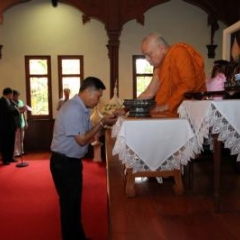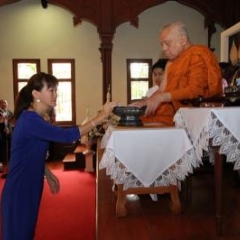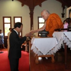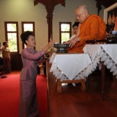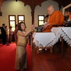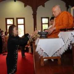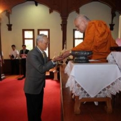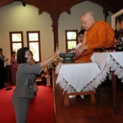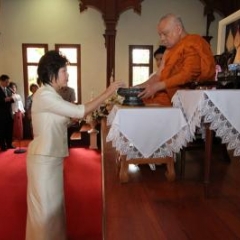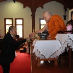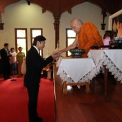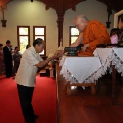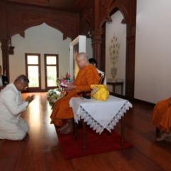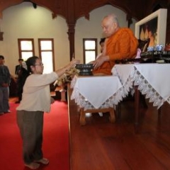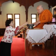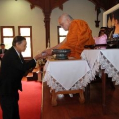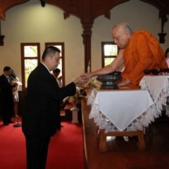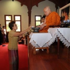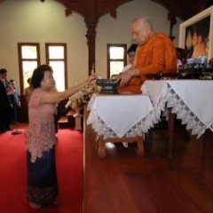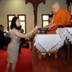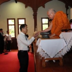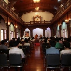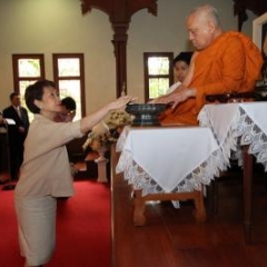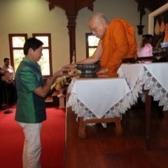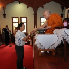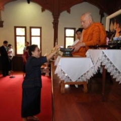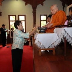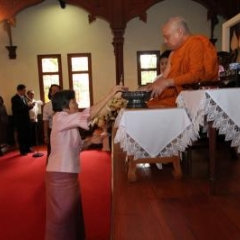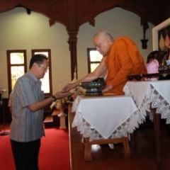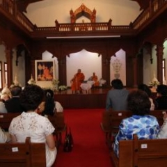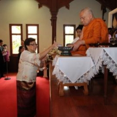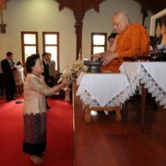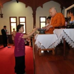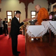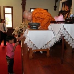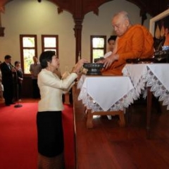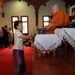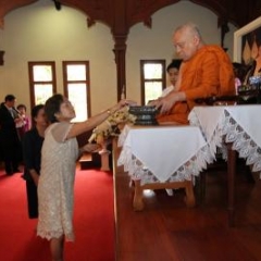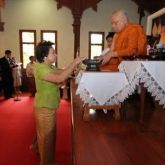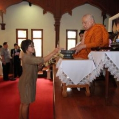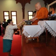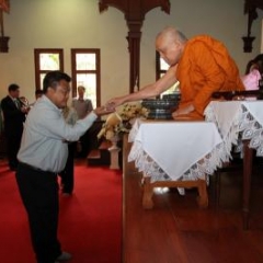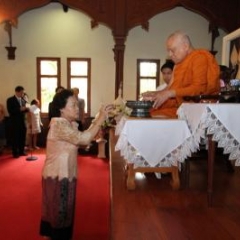 ภาพพิธีสมเด็จพระวันรัตประทานพระกริ่งนิรันตราย ณ อาคารมนุษยนาควิทยาทาน วัดบวรนิเวศวิหาร ๒ สิงหาคม ๒๕๕๗