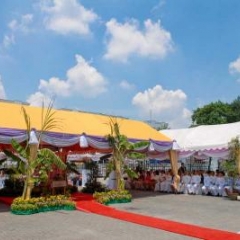 |  | (พระสงฆ์เจริญชัยมงคลคาถา ชาวพนักงานลั่นฆ้องชัย ประโคมสังข์ แตร ดุริยางค์) |