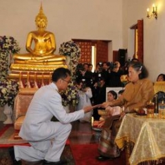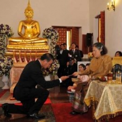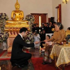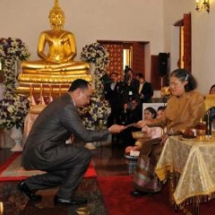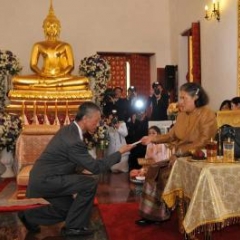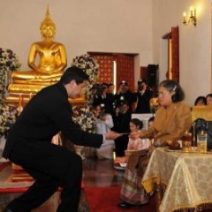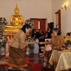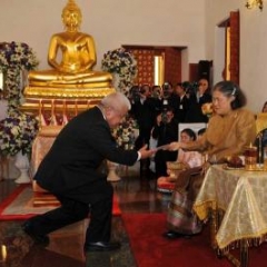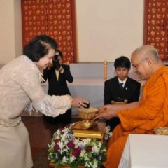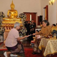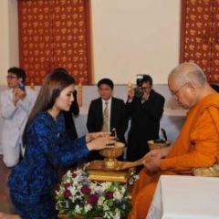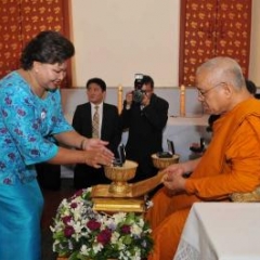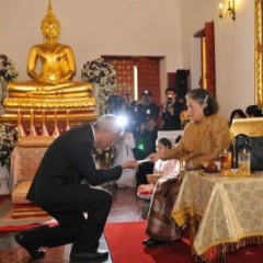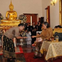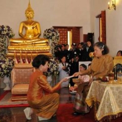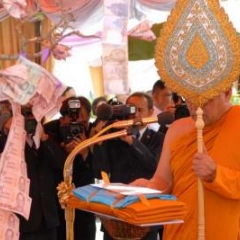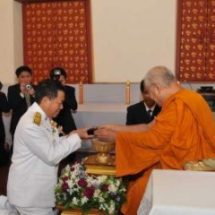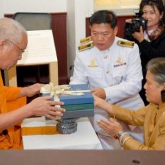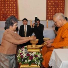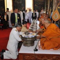 |  | -  ทรงประเคนจตุปัจจัยไทยธรรมถวายพระสงฆ์ |