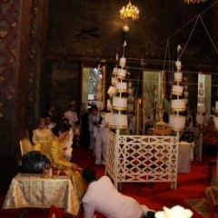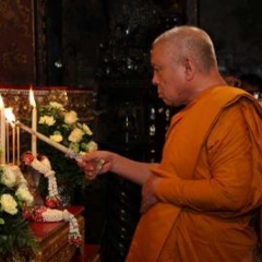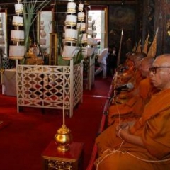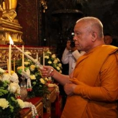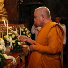 | (ขณะสมเด็จพระมหารัชมังคลาจารย์ จุดเทียนชัย พระสงฆ์เจริญคาถาจุดเทียนชัย | |